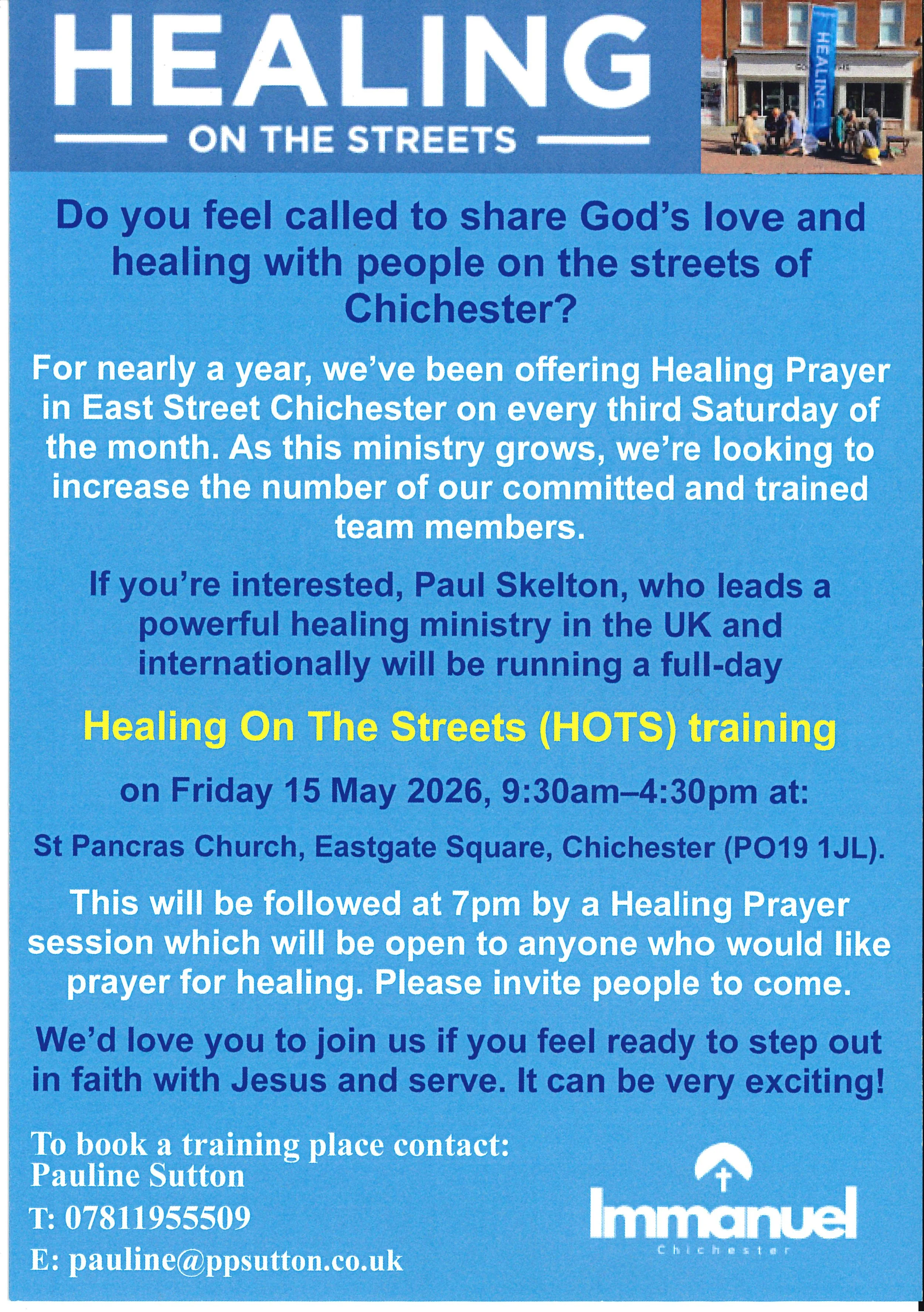 Healing on the Streets Training - Friday 15th May 9:30 - 4.30pm - Organised by Immanuel Church Jenny Green29 April 2026 Facebook0 Twitter LinkedIn0 Reddit Tumblr Pinterest0 0 Likes